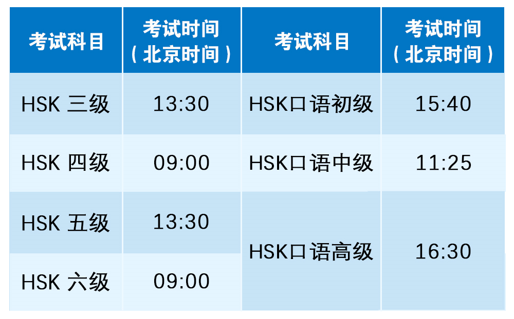 6. 居家网考需要同时参加HSK笔试和口试考试,不可单独报名HSK或口试。相关级别对应如下:
