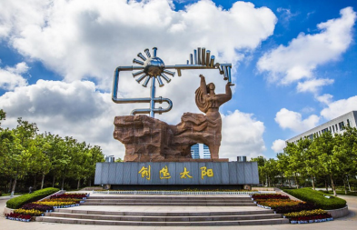 创造太阳:进入石油大学南门,首先映入眼帘的便是石油大学的标志性建筑——创造太阳。创造太阳有深刻的含义:圆球象征太阳,道比喻太阳辐射出的弯道光芒,长管道是输油、输气管线。具体到人物即是象征着开发能源、从事高等教育的人,她高高举起的书,指引千万学子在科学的殿堂上攀登。雕塑的底座是非常逼真的海上钻井平台的样子。整个雕塑还可以释义为:大地、人体浑然一体,运用支持资源开发物质能源,创造出一个新的太阳。