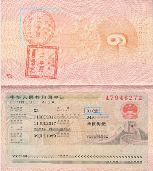 二、 X2签证自入境之日起算加签证上标注的入境后可停留天数即为X2签证有效期,比如持下图X2签证于入境章所示2017年7月22日入境,加上签证上标注的停留45天,此签证2017年9月5日前有效。