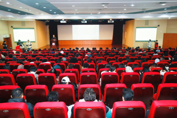 Ma Guoshun, Deputy Secretary of the Party Committee, expressed his hope that the participating companies would help international students understand the industry dynamics and clarify their career planning through their presentations. The officials from Qingdao Public Employment and Talent Service Center and Exit-Entry Administration of Qingdao Municipal Public Security Bureau gave presentations in English and Chinese on the policies related to the jobs of international students in Qingdao as well as laws and regulations related to exit and entry, and answered questions on the spot.