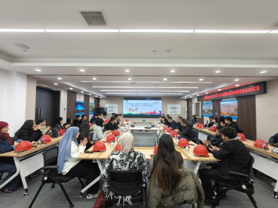 To deepen the collaboration in education between the university and the enterprise, and broaden the students' perspective in industry, on the afternoon of January 8th, the teachers from the Civil Engineering Department of the Storage and Construction Engineering College led 24 international students from 9 countries along the "Belt and Road Initiative" such as Morocco, to the No. 3 Branch of China Construction First Group for a recognition internship and exchange activity.