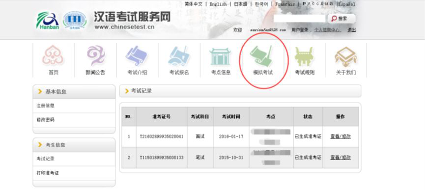 After login, enter the welcome page. Please click "Enter the Personal Information Center", then click the“Mock Exam" at the top.