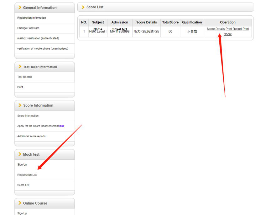 After the test, enter the "Mock Test Score List" on the left of the "Personal Center" to view your score and answer analysis. The HSK test takers can also get their own score diagnosis report.