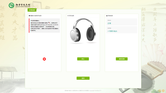 2) Network: download the Chinese Network Test Client to test the network speed, which should reach 150 KB/s. Please do not register if the network cannot meet the requirements. Download website: /index.html