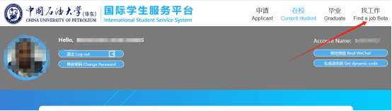 1. Log in to the International Student Services System (ISS)computer version(https://upc.at0086.cn/Student). The user name is the student number and the initial password is UPCat0086.