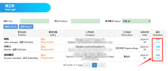 3. Click on “View” to view the detailed employment requirements;