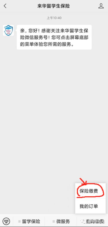 (1) Scan the WeChat account of "Insurance for Study in China", follow it, check the payment at the lower right corner - enter your passport number to pay the insurance through WeChat.