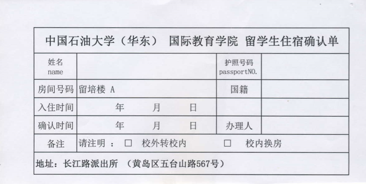 Students living on campus should collect the Accommodation Information Confirmation Form at the Reception and then bring this form together with their passports for registration at the police station.