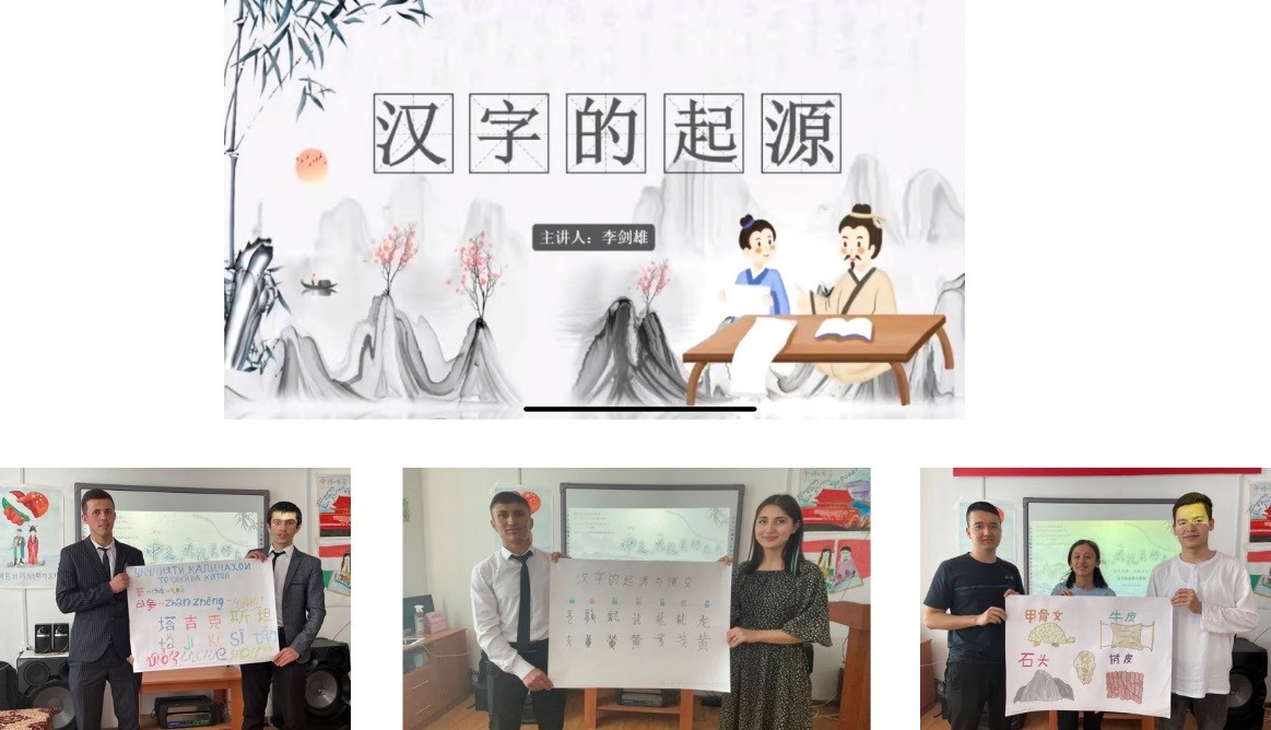 In the lecture on the origin and development of Chinese characters, Li Jianxiong , the teacher from Lanzhou Resources and Environment Voc-Tech University were invited to explain the origin and development of Chinese characters to Confucius Institute students through an online forum. The students spoke enthusiastically in class and were greatly interested in the characteristics of "meaning beauty, sound beauty and shape beauty" of Chinese characters. Then they made a presentation in groups.