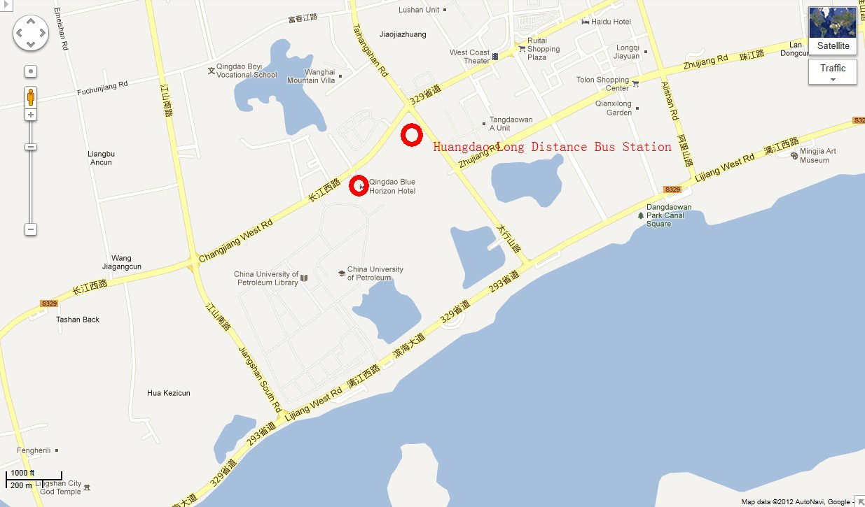 黄岛长途汽车站位于中国石油大学校园东边,金港大酒店旁边。距学校北门步行约5分钟。