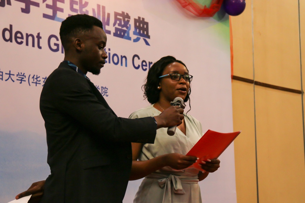 随后,我院2015级石油工程本科生CHIKU PHILLIP MBELWA和2016级石油与天然气工程硕士研究生ALI MOHAMMADI作为毕业生代表发言,共同表达了对学校老师的感谢,同时对所有的同学送上了真挚的祝福。