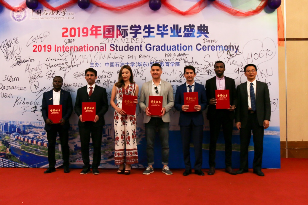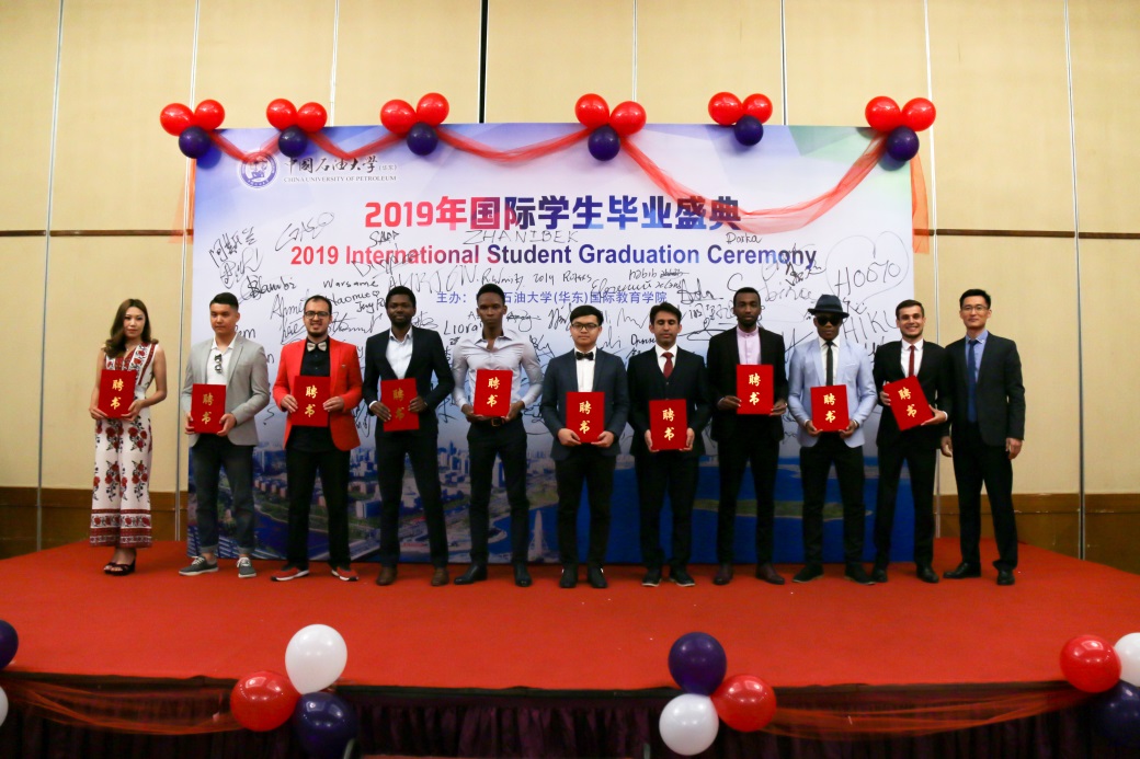 6月27日晚7点30分,我院隆重举行2019届国际学生毕业盛典,祝贺我校国际学生毕业生圆满完成在中国的求学之路。本次毕业盛典主题为“青春散场,石大不离开”(“Youth Never End, UPC Never Leave”),是我院首次以“红毯秀”的形式送别国际学生毕业生。学院领导、老师,辅导员助理及毕业生亲属朋友到场共同见证这个欢乐的时刻。