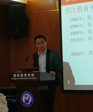 其后,葛长波副院长做题为《做德高风清的新时代高校教师》的报告,带领全院共同学习全国教育大会精神和师德师风建设要求,号召全院教职员工应以时代的使命感、高度的责任感,以院为家,立足本职,加强合作,身体力行贯彻落实全国教育大会精神;以加强师德师风建设为契机,树立“人类命运共同体”意识,为培养“知华、友华、爱华、颂华、留华”的国际友人贡献力量,为“一带一路”倡议添砖加瓦,为来华留学事业的美好明天不断努力,努力做一名师德高尚、师风清正的新时代教师。