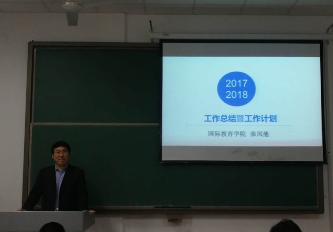 接着,院长栾凤池在会上作了讲话。他首先对2017年工作进行回顾,肯定工作中取得的新突破:也门籍留学生沙卫诗获2017全球外国人汉语大赛银奖;我校被推选为中国高教学会外国留学生教育管理分会副理事长;我校被推选为“一带一路”人才培养校企联盟副理事长单位;成功承办教育部全国来华留学领导干部研讨班;成功举办教育部全国来华留学基层干部培训班;成功组织召开全校性留学生研究生教学研讨会。他分别从招生、教学、学生管理、汉语国际教学管理和科研工作、孔子学院工作及学院自身建设和作风建设方面进行深入分析。指出目前工作中存在的问题和不足,包括学生质量与我校“211”高校和“双一流” 大学地位及我校国际化办学目标还不够匹配、专业分布不够合理及留学生授课师资力量不足、研究生全英文专业数量少等方面。他要求,下一步工作中,做好顶层设计,招生工作规模与质量并重;围绕双一流学科,建设系列专业,以服务山东省和青岛市需要;加强教材和课程建设,提高留学生培养质量;完善留学生管理机制和体制,重视留学生身心安全教育,防患于未然;加强海外孔子学院建设和合作办学项目推进工作;加强教师队伍建设。