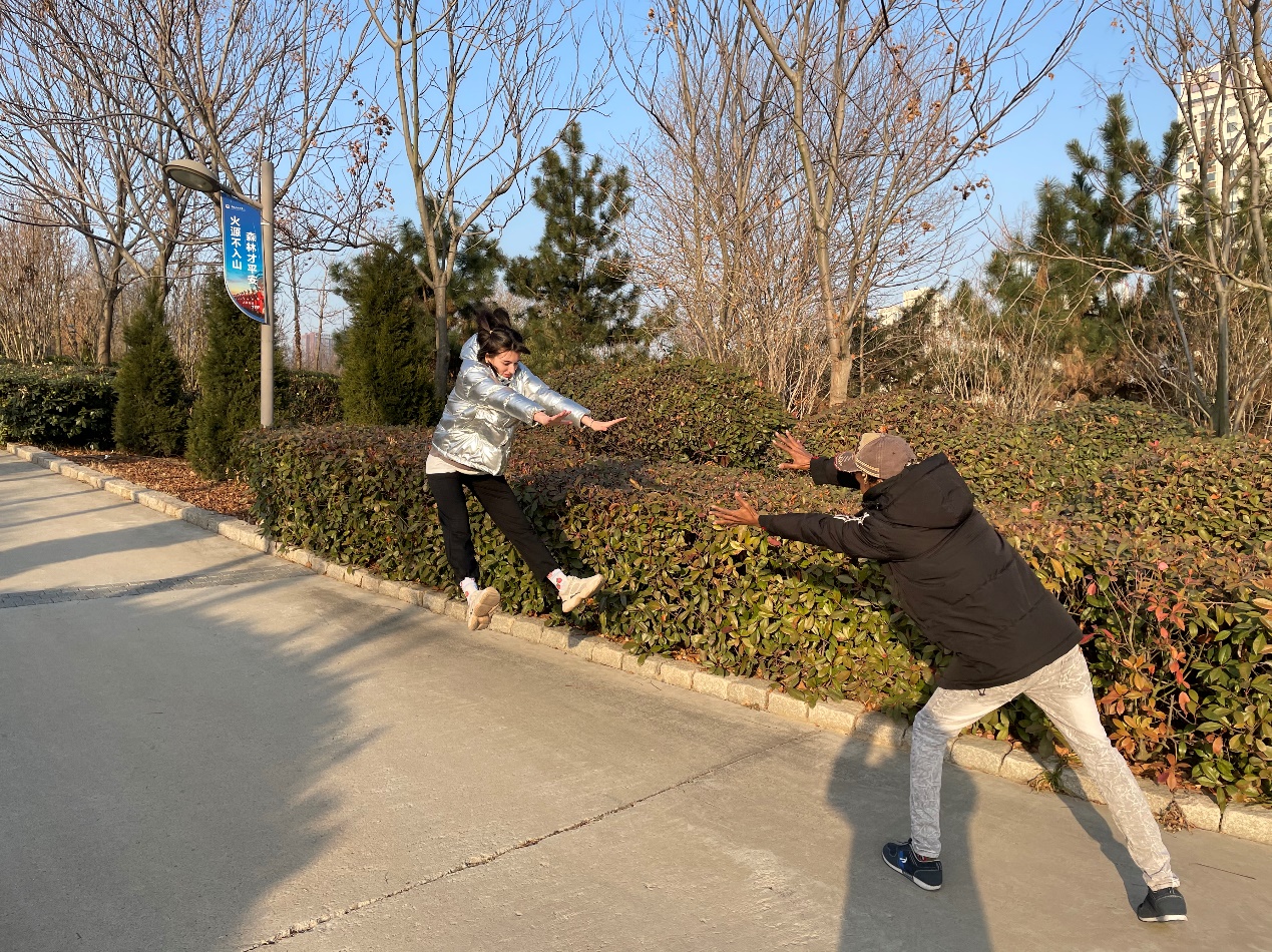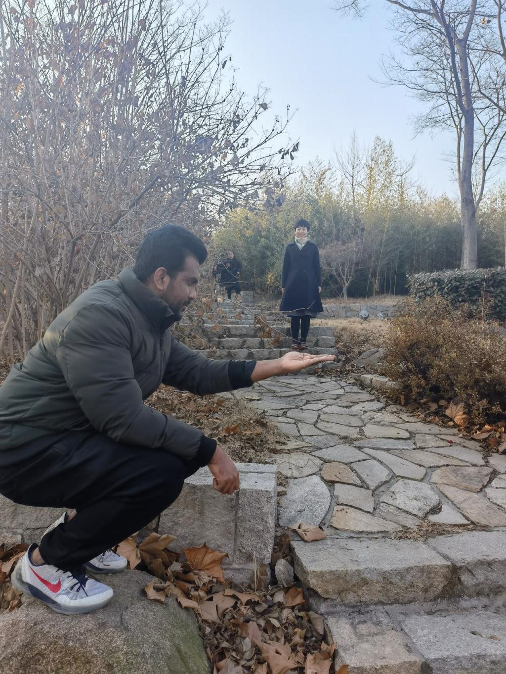 通过照片的线索提示,师生们按图索骥,共同奔跑,一同寻找隐藏的打卡点。有时驻足探讨,有时分头寻找,有一筹莫展的焦急,也有柳暗花明的喜悦,落叶满地的小黄山也变得趣意盎然。在打卡拍照环节,师生们更是亲密无间,相互配合,拍出了一张张幽默风趣的师生合影。
