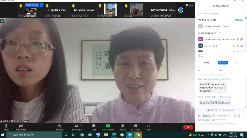本次说明会采用ZOOM线上会议的方式举行,共分成三个部分。首先由招生办公室主任李高青通过学校宣传视频和PPT做了学校介绍和新生报到常见问题回应;随后,张志英副院长为参会学生逐一解答了关于线上注册、新学期学习安排、研究生导师联系等等各类学业相关问题;最后,本科生学生代表REUBEN KWABENA AFIMBO、硕士研究生学生代表KSENIA KORYUKAEVA和博士研究生生代表MOHAMMED SALEH AHMED ABDULLAH GAGHMAN为参会学生解答了学生们关心的其他在华学习和生活问题。