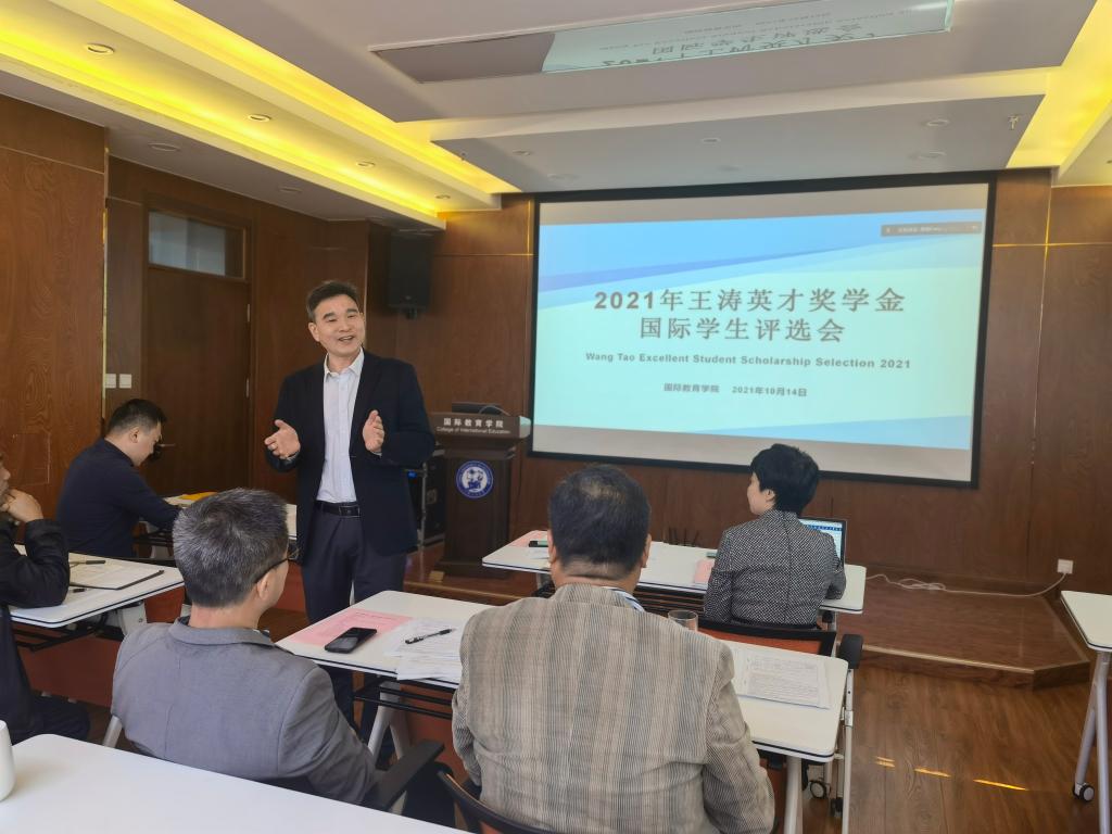 自9月30日起,经个人申请、资格审查,共有5名本科生、3名硕士生和2名博士生入围最终学院终审答辩环节。本次评审答辩以候选人PPT展示汇报、专家提问答辩的形式进行。候选人通过抽签方式排序,依次由境内学生做线下答辩,境外学生做线上答辩。专家评委由学院领导班子成员以及各国际学生相关工作部门负责人组成。本次评选本着公平、公正、公开的原则,严格按照王涛英才奖学金评选细则等相关规定进行评定。