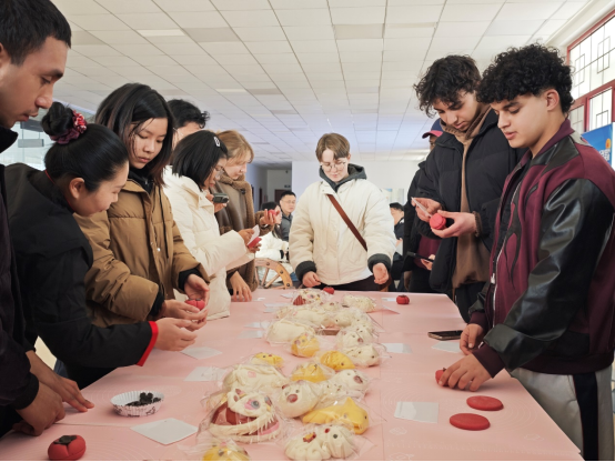 活动的第二站是手工花馍制作体验。花馍是中国北方传统的面食艺术,尤其在山东地区有着悠久的历史。国际学生们在面点师傅的指导下,亲手制作了各种造型精美的花馍。从和面、揉捏到造型,学生们不仅学习了传统面食的制作技巧,还感受到了中国饮食文化的独特魅力。