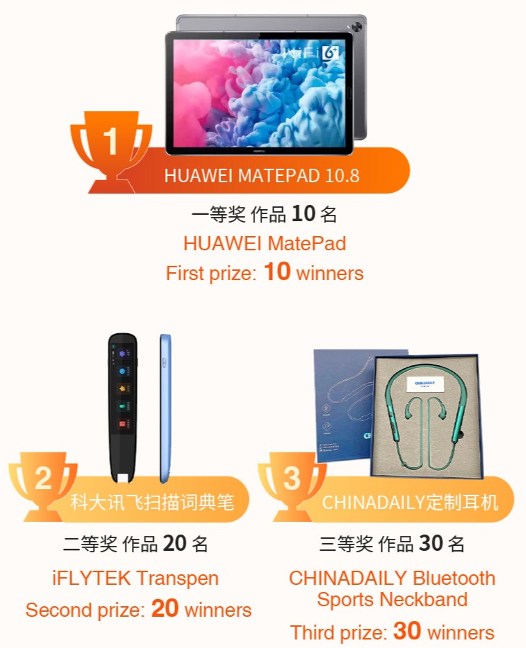 There will be three prizes for 60 winners. An award ceremony and online forums will be held in July in Beijing.