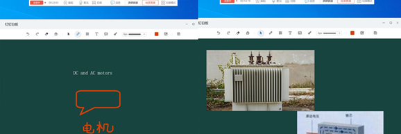 说起露脸,钉钉直播是可以选择显露或者隐藏,我个人觉得还是露脸效果更好。这样讲课时的声容并茂,学生都可以体会到,更具有课堂气氛,不容易走神,并且因为是给留学生授课,讲授的是“Circuit analysis”和“Electrical motors”两门重要的专业课程,许多时候我会采用语言、手势与图画、实物器件展示相结合的方式,比如在讲课过程中讲到一些电机旋转、电流流向、电感的绕向等知识点结合手势,学生能观察到;再比如讲到万用表、新能源等概念,我会把家中真实的仪表、太阳能板提前放在手边,课堂中展示给学生观看,学生很感兴趣并且会更容易接受和理解,从而提高课堂的听课效率和教学质量,这种方式更贴近实际课堂,这也是我未选择其它录播方式的主要原因。