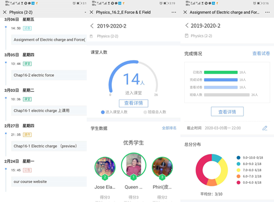 雨课堂能够记录整个学期的教学过程,学生的每次考勤,课堂测试,课后作业线上批改、课堂测试和作业成绩可以及时查看,并且可以全部导出,是教师的得力助手。雨课堂依托微信,留学生微信用得熟,用起来不成问题。