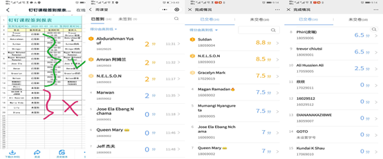为提高留学生学习的主动性,我加强考勤以及作业监督。对课堂的考勤结果和作业情况及时反馈,会促进学生更加遵守课堂规则,认真完成作业。每次课结束,把考勤表和本节课课堂测试成绩截图发到群里,每次批改完作业也把作业成绩发到群中,这样,学生知道老师在关注他们,他们也会越做越好。
