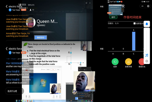 课堂从教室挪到网上,肢体语言优势不见了,演示实验仪器不能带到教室了,我拿什么弥补这两块不足呢?我的课程网站里的课程视频和国际名校公开课这时可以作为有力补充,因为录课前都是认真准备的,语言精练,设备齐全,这绝对是精品干货。对于个别专题,可以一边播放教学视频,一边提出问题让学生思考,或者一边做旁白解释,或者对重点知识进行强调。这点要感谢女儿的数学老师,她的授课过程给我很大启发。