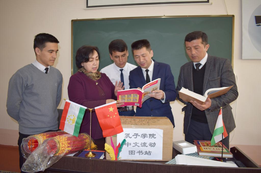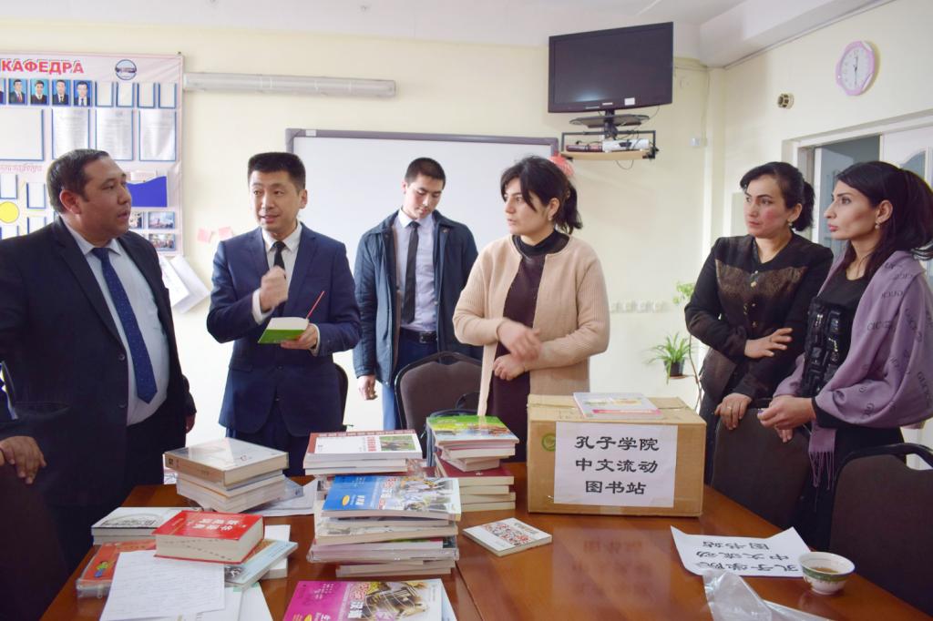 2月27日,任耕田院长又到伊斯提克洛尔市二中为该教学点赠书,中学校长玛杜玛罗娃波瓦尔女士表示,感谢孔子学院一直以来对二中汉语教育的支持,表示会全力配合驻点教师的工作,将二中的汉语课程打造成地区精品,共同培养高水平汉语人才。