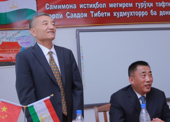 2018年9月27日,正在塔吉克斯坦中资企业检查安全生产工作的西藏自治区商务厅代表团,顺访了我校塔吉克斯坦孔子学院。到访成员有西藏自治区商务厅副厅长王平、商务厅外经处副处长洪绍良和安监局监管处主任科员李孔明等,当地中资企业相关领导陪同。