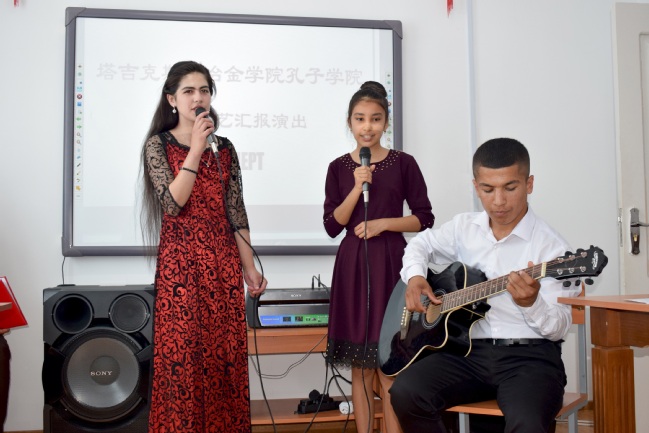 为了促进中、塔两国优秀文化交流,展示塔吉克斯坦冶金学院孔子学院2018年春季学期的教学成果,鼓励学员不忘初心,再接再厉,塔吉克斯坦冶金学院孔子学院于2018年6月7日举办了“2018年春季学期结业汇报演出暨企业奖学金颁发活动”。