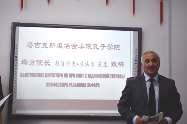 塔吉克斯坦冶金学院孔子学院外方院长扎法尔教授致欢迎辞
