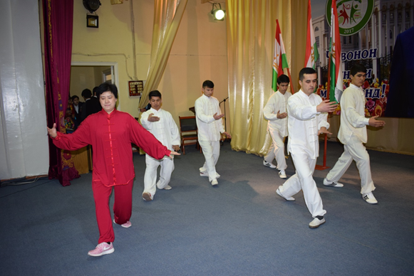 礼乐传家久,诗书继世长。国学经典《弟子规》吟诵活动完美地呈现了崇文重礼的中国文化。孔子学院“姐妹花”学员为大家演唱了活泼轻快的校园歌曲《踏浪》,歌声婉转、舞姿灵动。教师王笑梅带领5名学员为大家展示了太极拳,精湛的表演引起阵阵欢呼。“这一首简单的歌,并没有什么独特,好像我,那么的平凡却又深刻”,孔子学院4名学员将《一首简单的歌》献给在场观众,歌声温婉,荡漾人心。胡占德市武术协会受邀在活动中表演了中国武术,演员们轮流上场,各显神通,赢得热烈掌声。