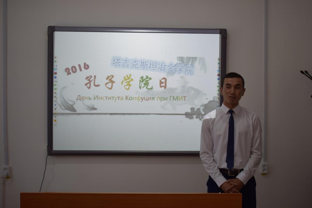 2016年9月24日,为庆祝孔子学院日,扩大孔子学院在当地的影响力,塔吉克斯坦冶金学院孔子学院举办 “2016年孔子学院日”活动。孔子学院中外方院长、塔吉克友谊及对外文化联络协会代表、俄罗斯文化中心主席、塔吉克斯坦共和国州和共和国报社记者、冶金学院矿业系主任、中塔工业园区管理有限公司部分领导、冶金学院部分师生、孔子学院学员及当地居民等共计110余人参加了本次活动。