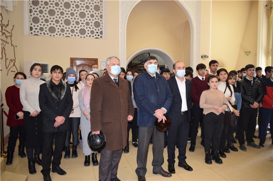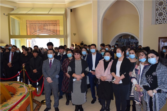 2月4日上午10点整,主题书画展正式开幕。活动邀请塔吉克斯坦共和国功勋艺术家、胡占德市somoniyon美术馆馆长,索格特州文化部代表,索格特州历史博物馆馆长,塔吉克斯坦冶金学院第一副校长,俄罗斯联邦驻索格特州领馆总领事出席。索格特州多家媒体代表,塔吉克斯坦艺术家联盟学院、胡占德国立大学、塔吉克斯坦国立政法商业大学等多所高校师生、博物馆工作人员以及当地市民群众等400余人参加了画展开幕式活动。