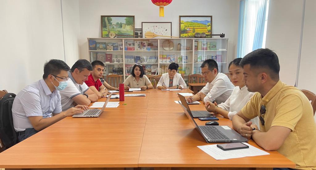 为全面总结本学期教育教学工作,在新学期工作中激励奋进收获新成绩,2022年6月16日上午,孔院成功召开2021-2022学年第二学期全体教师述职报告会暨期末考试分析交流会。会议采用在线视频方式,孔子学院中方院长线上参加,会议由塔方院长瓦利耶娃·马斯图拉主持,全体教师做个人述职及期末考试试卷分析,中方院长任耕田最后做总结讲话。