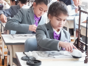 科学继承人学校小学四年级的20名同学与中国朋友们通过网络共同学习,中国石油大学(华东)俄语老师卡佳同步翻译。同学们首次与中国朋友们连线,以线上同步课程的方式共享中国文化课,既感受到了中国书法的妙趣,体会到了汉字文化的内涵魅力,也增进了彼此间的相互了解和文化认同,更加深了友谊。