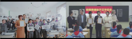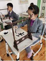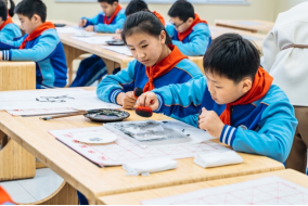 图2 两校学生共同学习、体验汉字书法和扑墨拓印