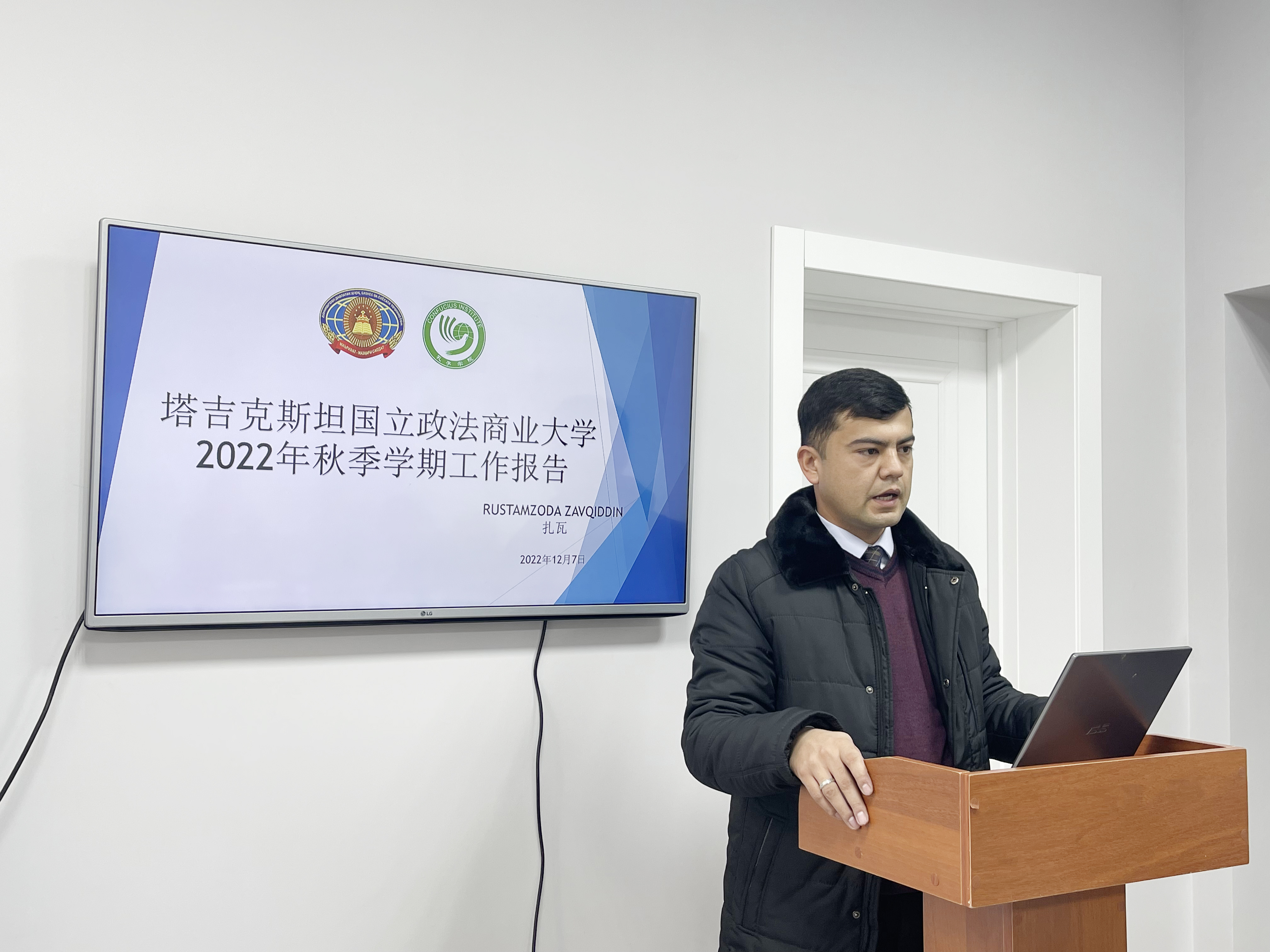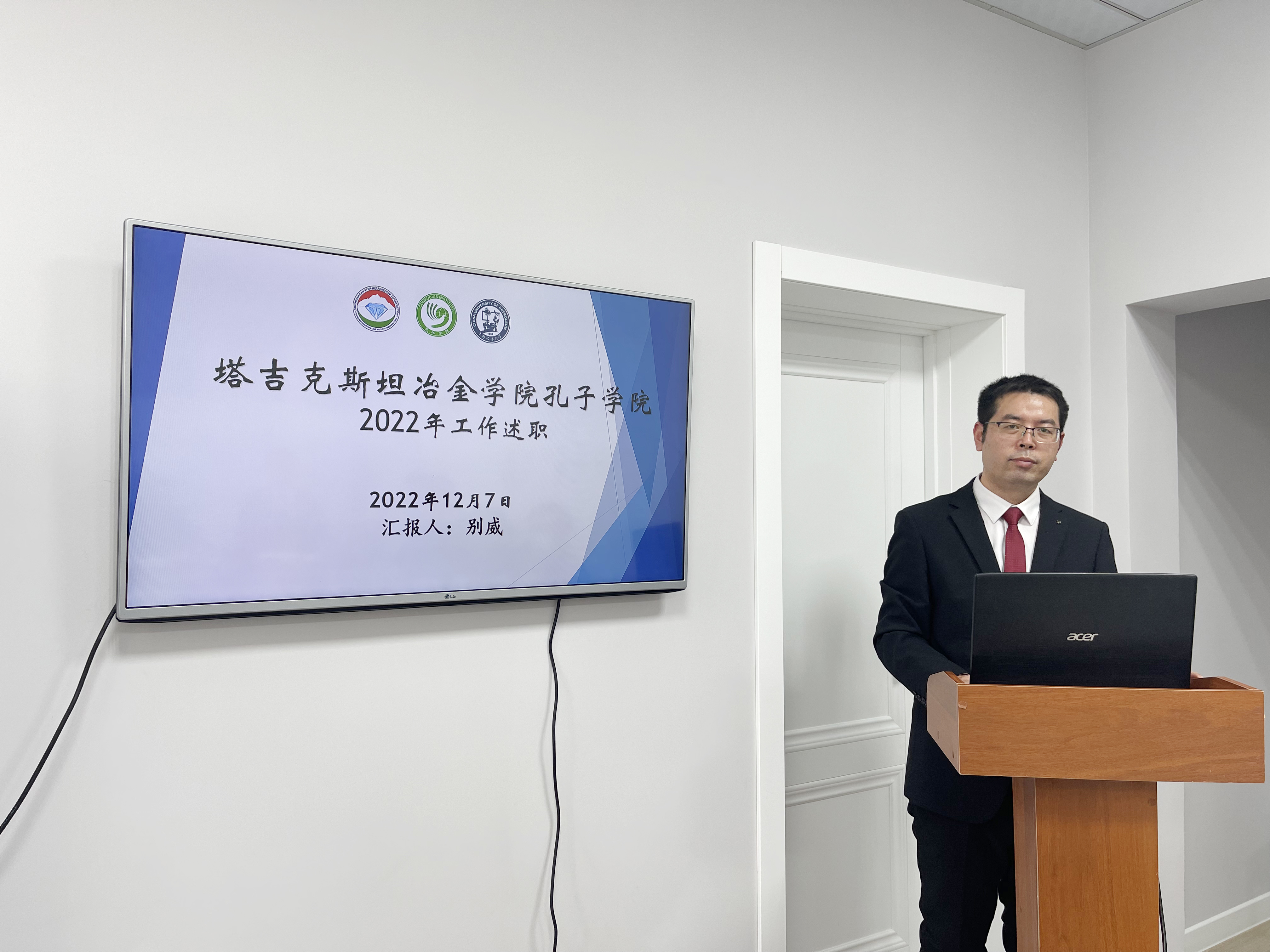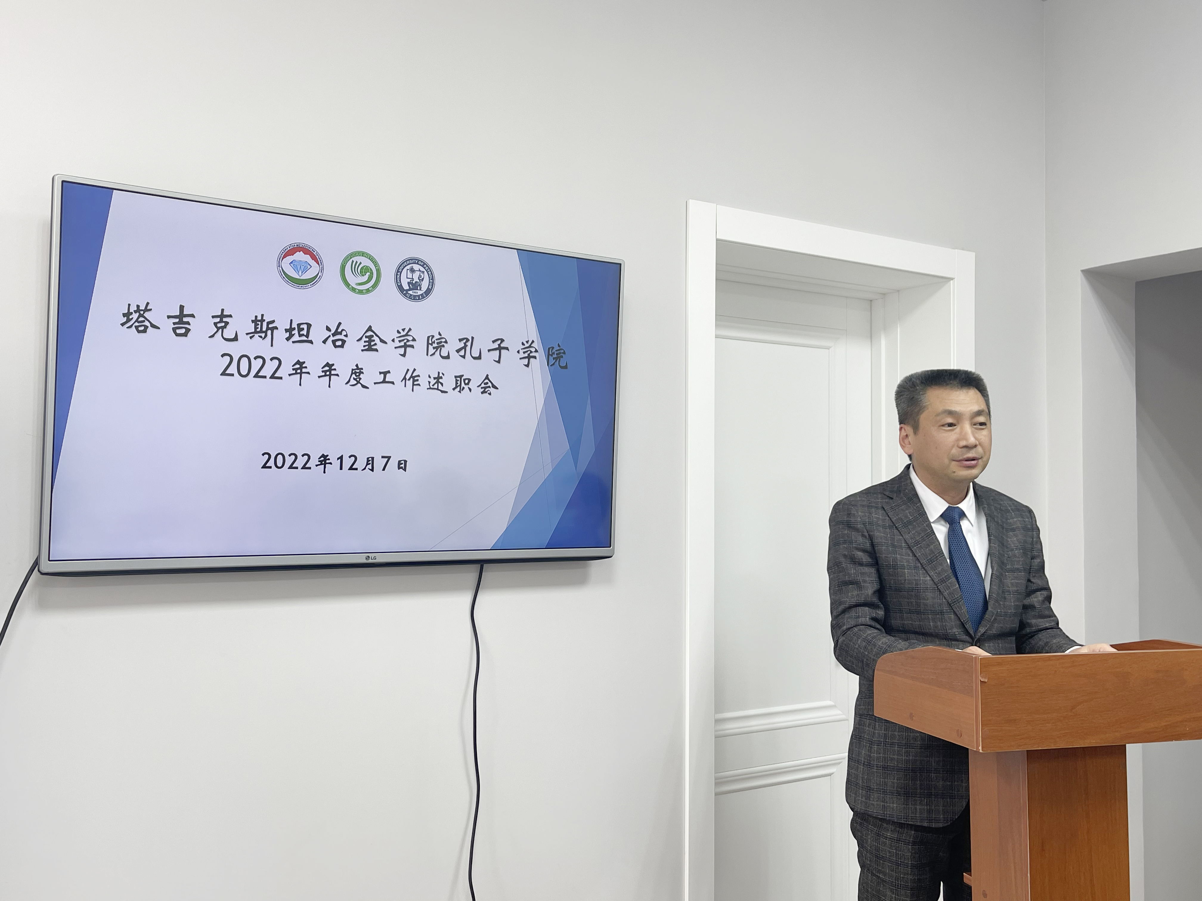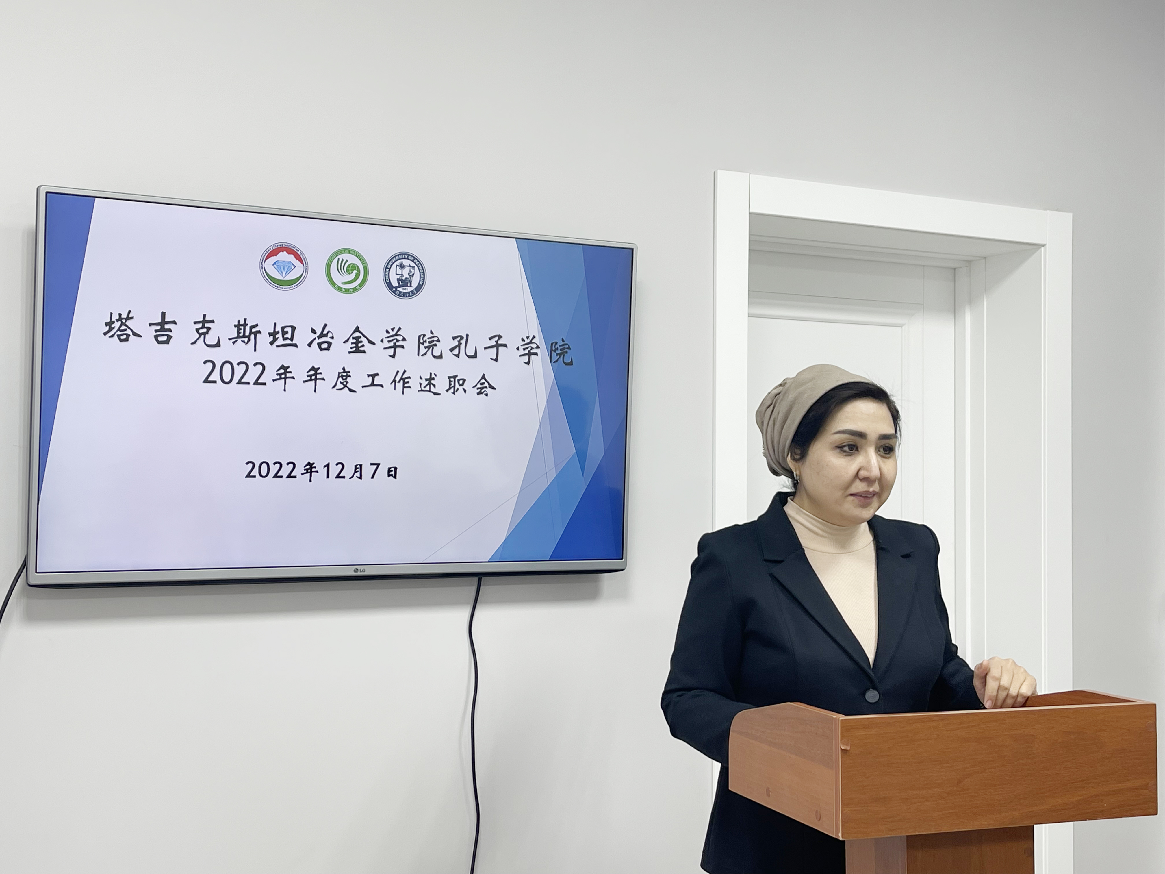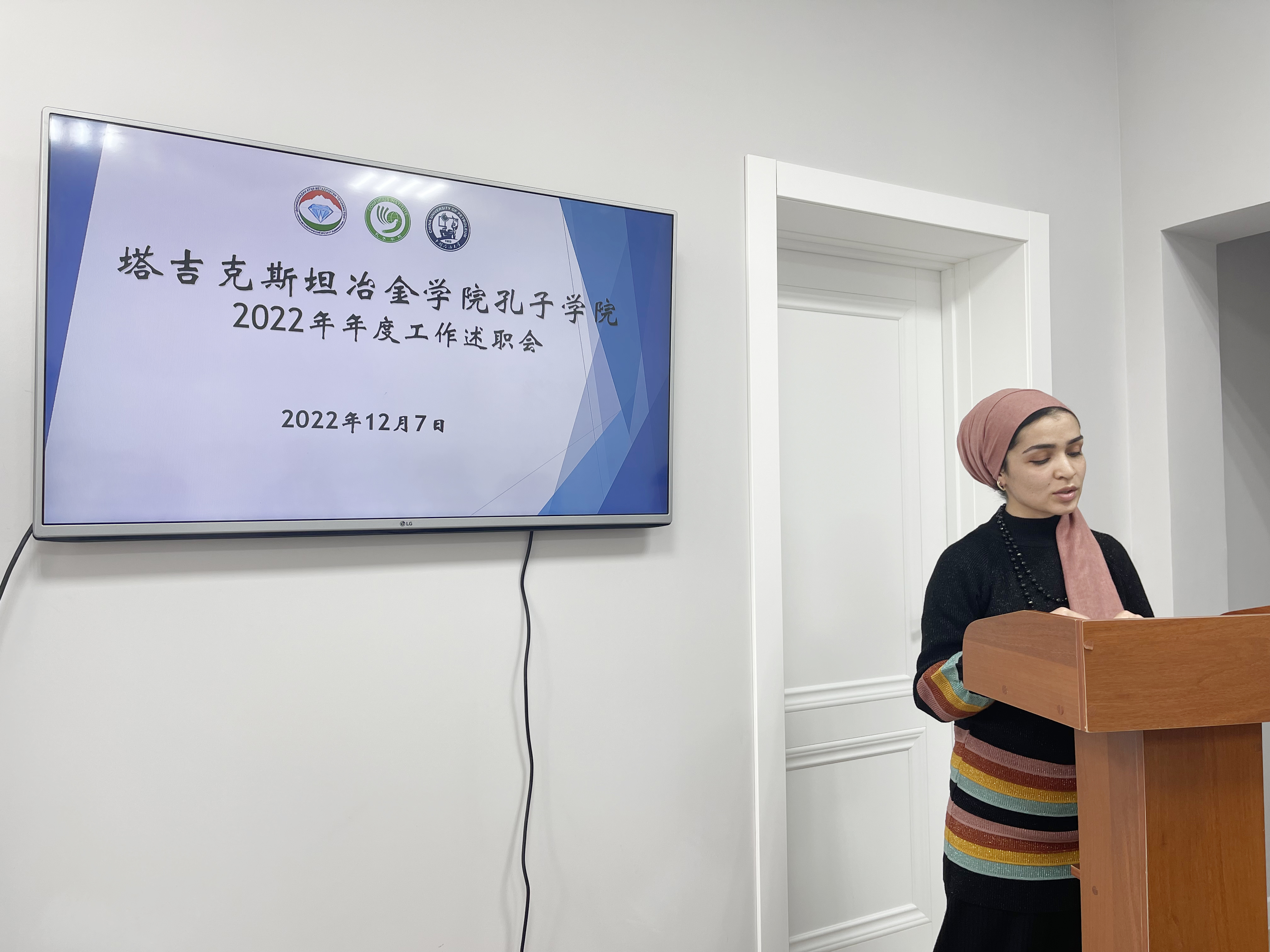 2022年12月7日,塔吉克斯坦冶金学院孔子学院在本部二楼会议室召开了2022年度工作总结会议。中方院长任耕田、塔方院长瓦利耶娃出席了本次会议,塔吉克斯坦冶金学院孔子学院全体教师做了2022年度工作述职报告。会议由教学副院长马驰主持。