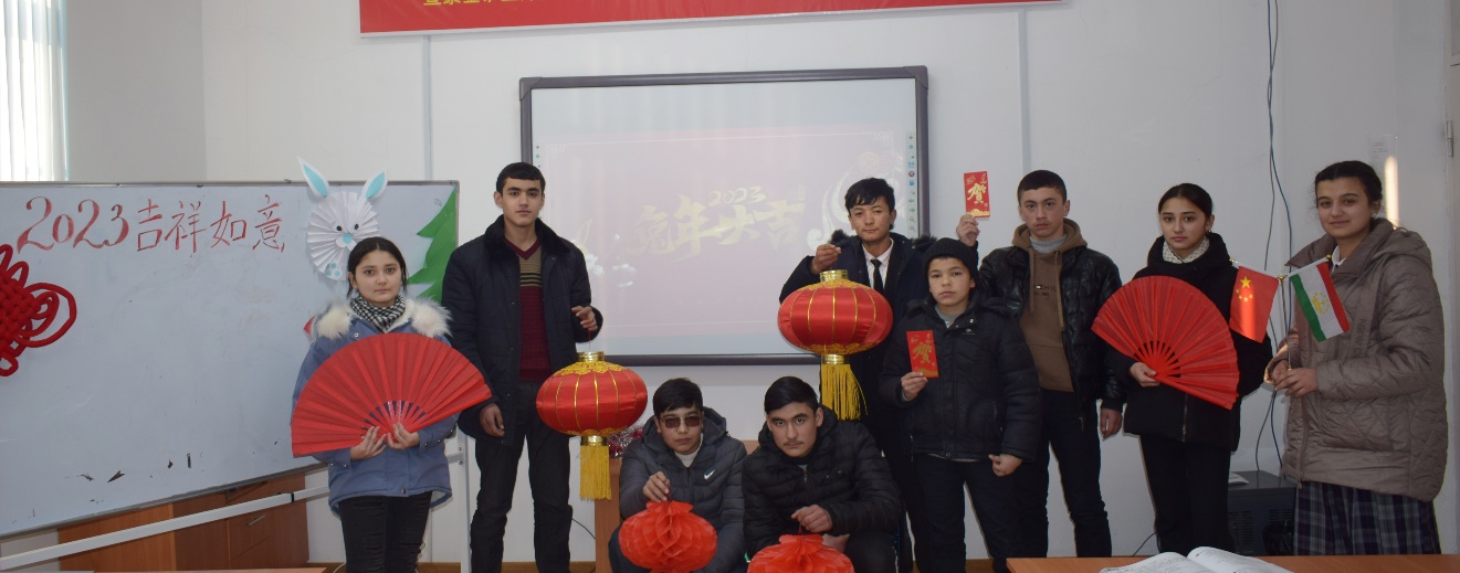 2023 年 1 月 20 日,塔吉克斯坦冶金学院孔子学院本部举办“瑞兔迎春”春节文化主题交流活动。