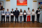 2024年,孔子学院在本土化教学改革方面取得重要突破,全体本土中文教师成功考取《国际中文教师证书》。其中,欧林(MARUPOV OLIMJON)老师在2024年“汉教英雄会”中亚赛区决赛中荣获二等奖,并将代表赛区赴北京参加全球总交流会。活动现场,冶金学院校长Mahmadali Bakhtiyor与Razykov Zafar教授为获奖教师及指导教师颁发证书,以表彰他们的优异表现和辛勤付出。