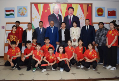 文艺表演环节邀请了塔吉克斯坦武术协会的青少年运动员们为大家带来武术节目,他们动作整齐,刚柔并济,喝彩声阵阵不断。孔子学院兼职武术教练花木兰还现场开设了一堂生动的武术教学课,学员们摩拳擦掌,跃跃欲试,活动氛围热烈高涨。
