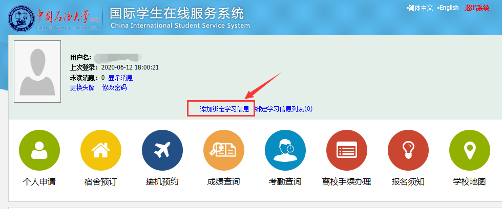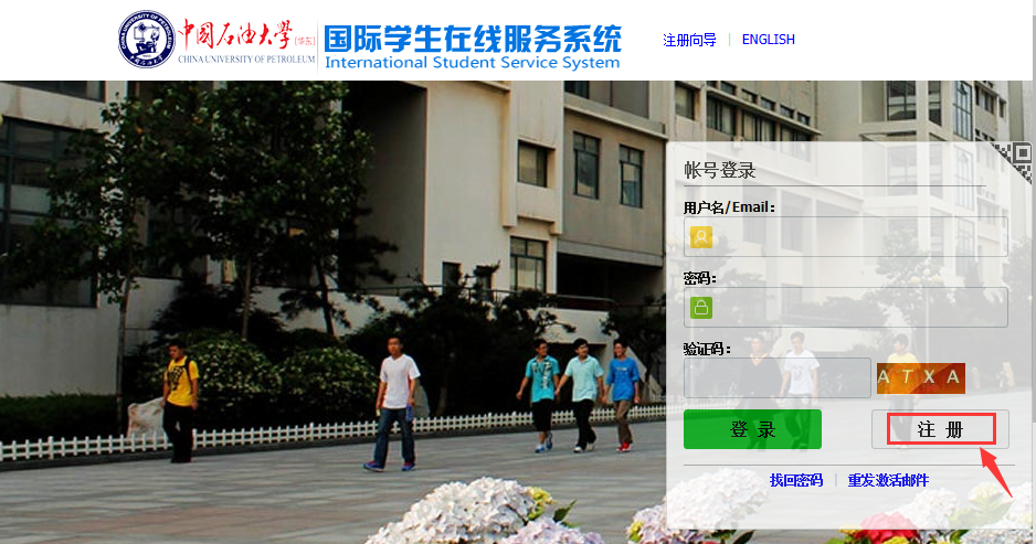 1、登录国际学生在线服务系统: https://upc.17gz.org/