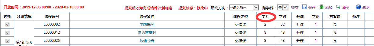 2. 制定培养计划 (在此前,需先和导师确认研究方向和要选择的课程)