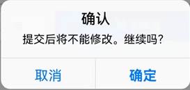● 系统提示“提交后不能修改,继续吗?”,确认信息无误后点击“确定”。