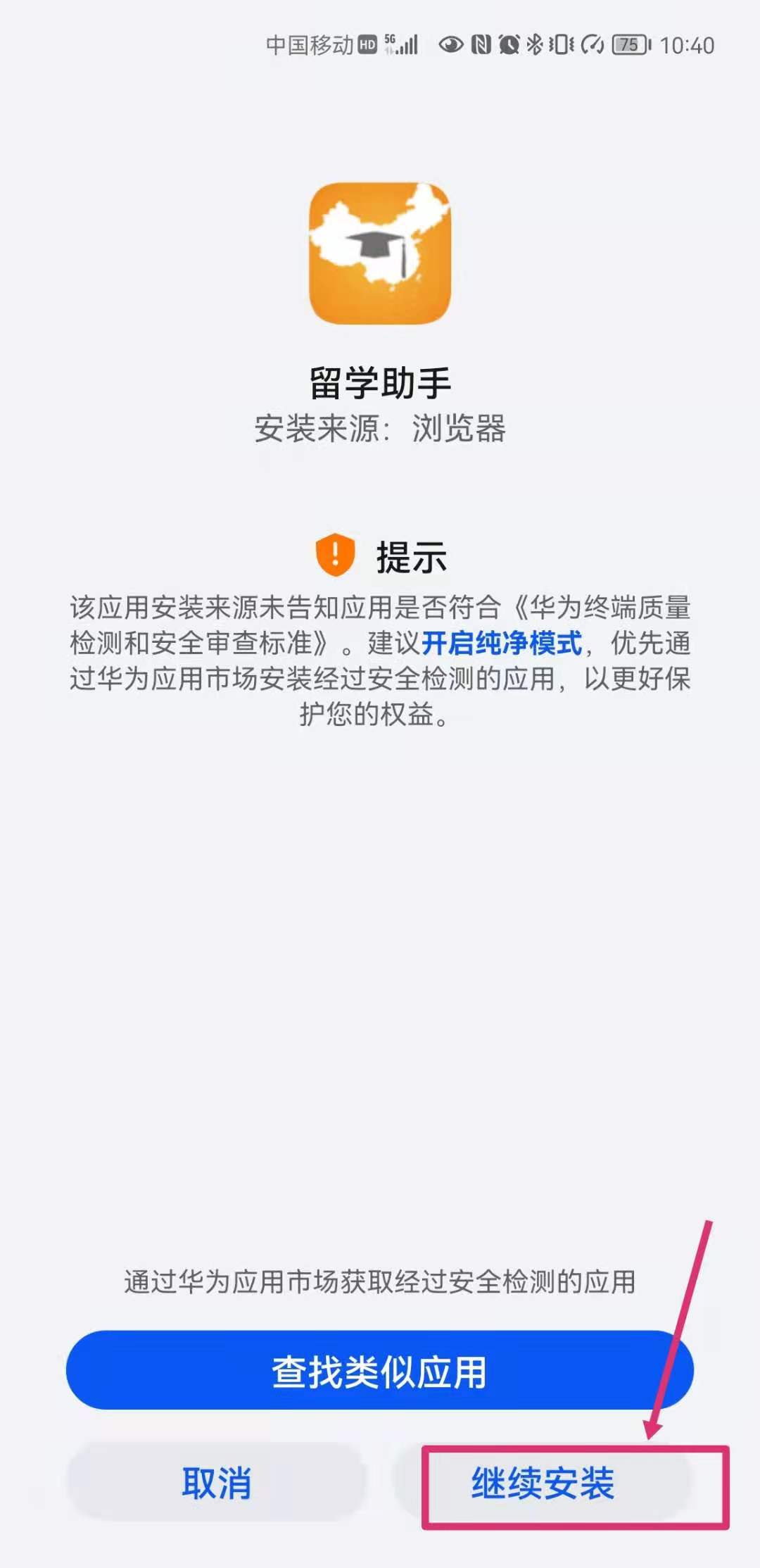 如扫码安装遇到问题,可以尝试在应用商店里搜索“留学助手”,下载安装。