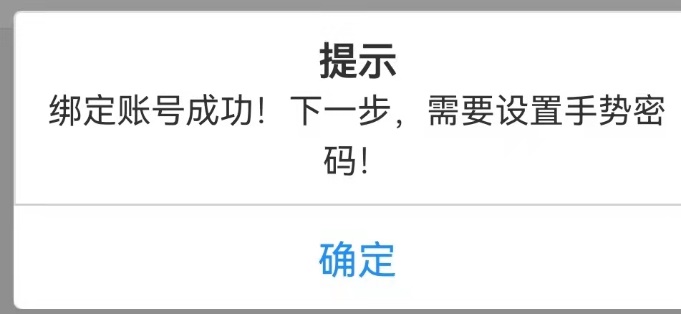 ● 绑定成功后出现以下提示,点击“确定”设置手势密码。