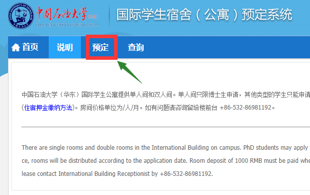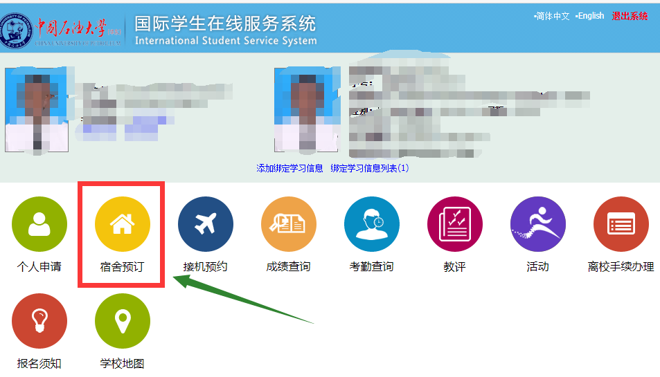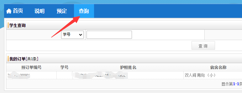 2、选择“宿舍预订”
