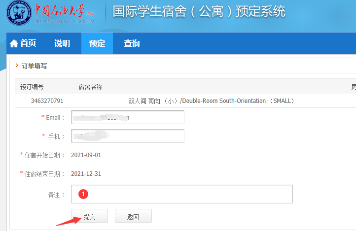 5、核对EMAIL和手机号码,有需要说明的信息请填写在备注栏,然后点击“提交”。等待审核。