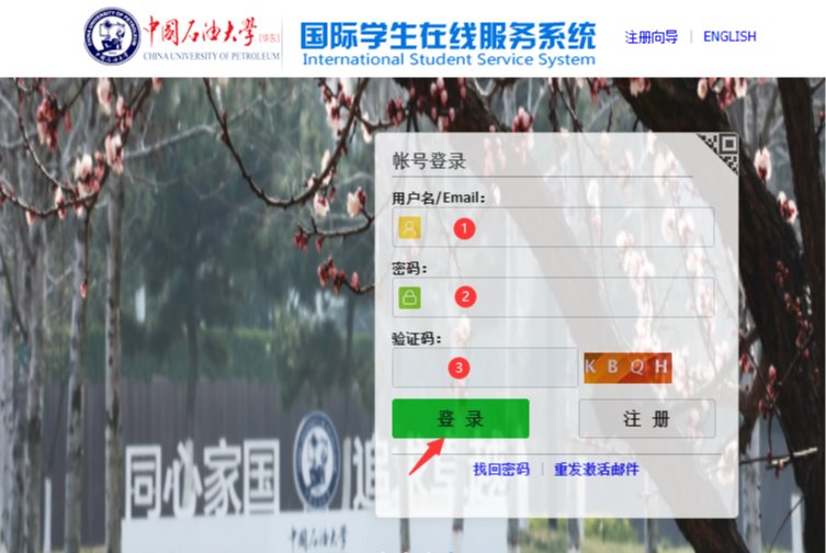 1、登录留学生管理服务系统:https://upc.17gz.org,输入注册邮箱和密码登陆。