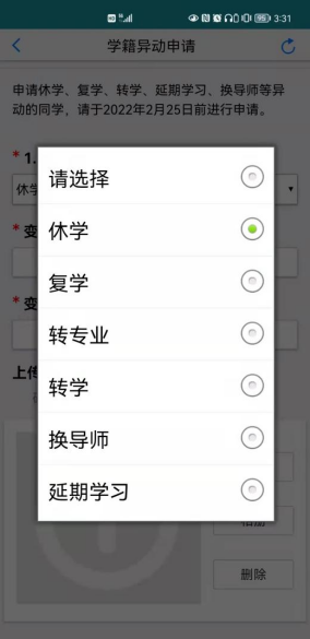 l 选择相应的异动类型,根据要求上传资料进行申请。
